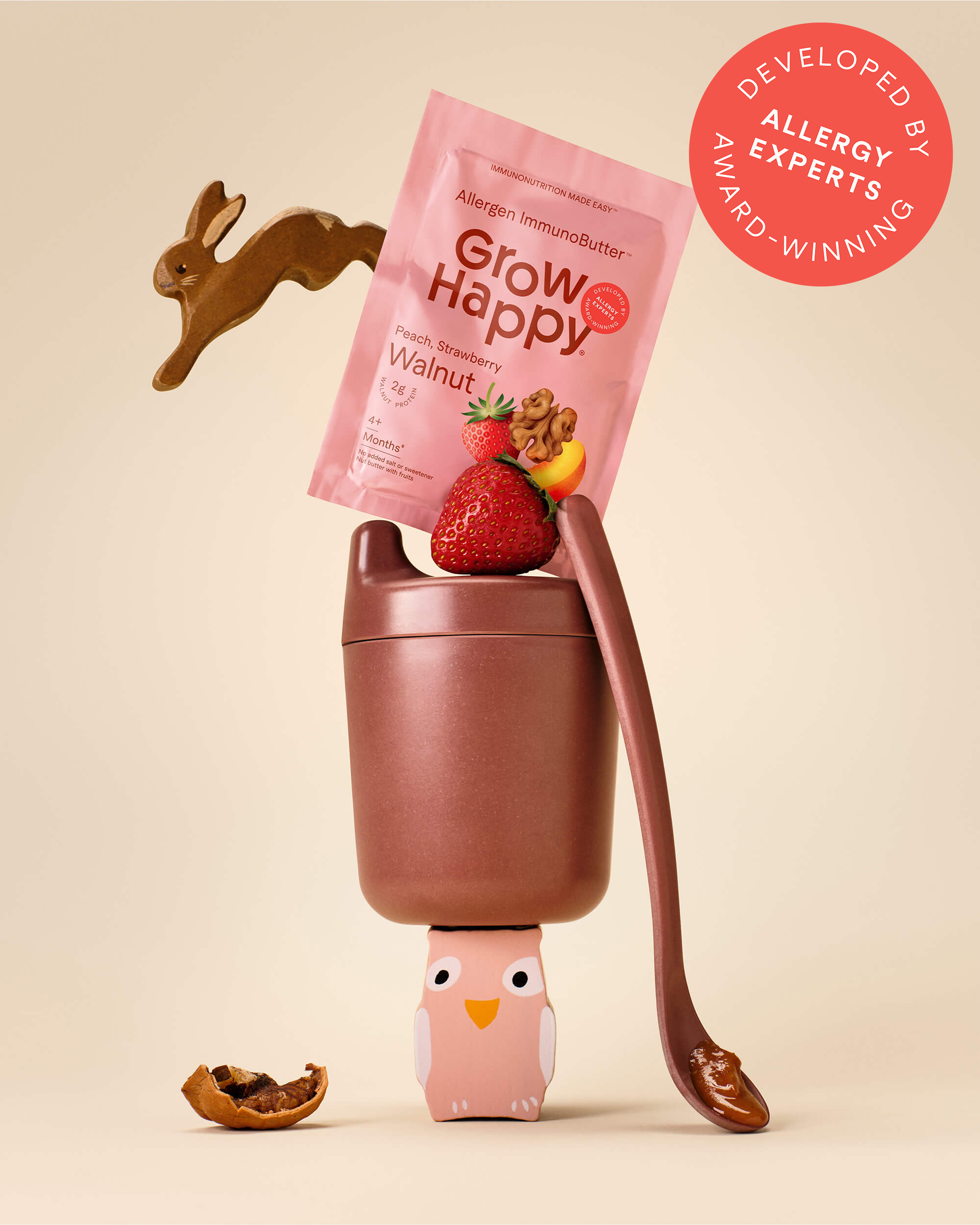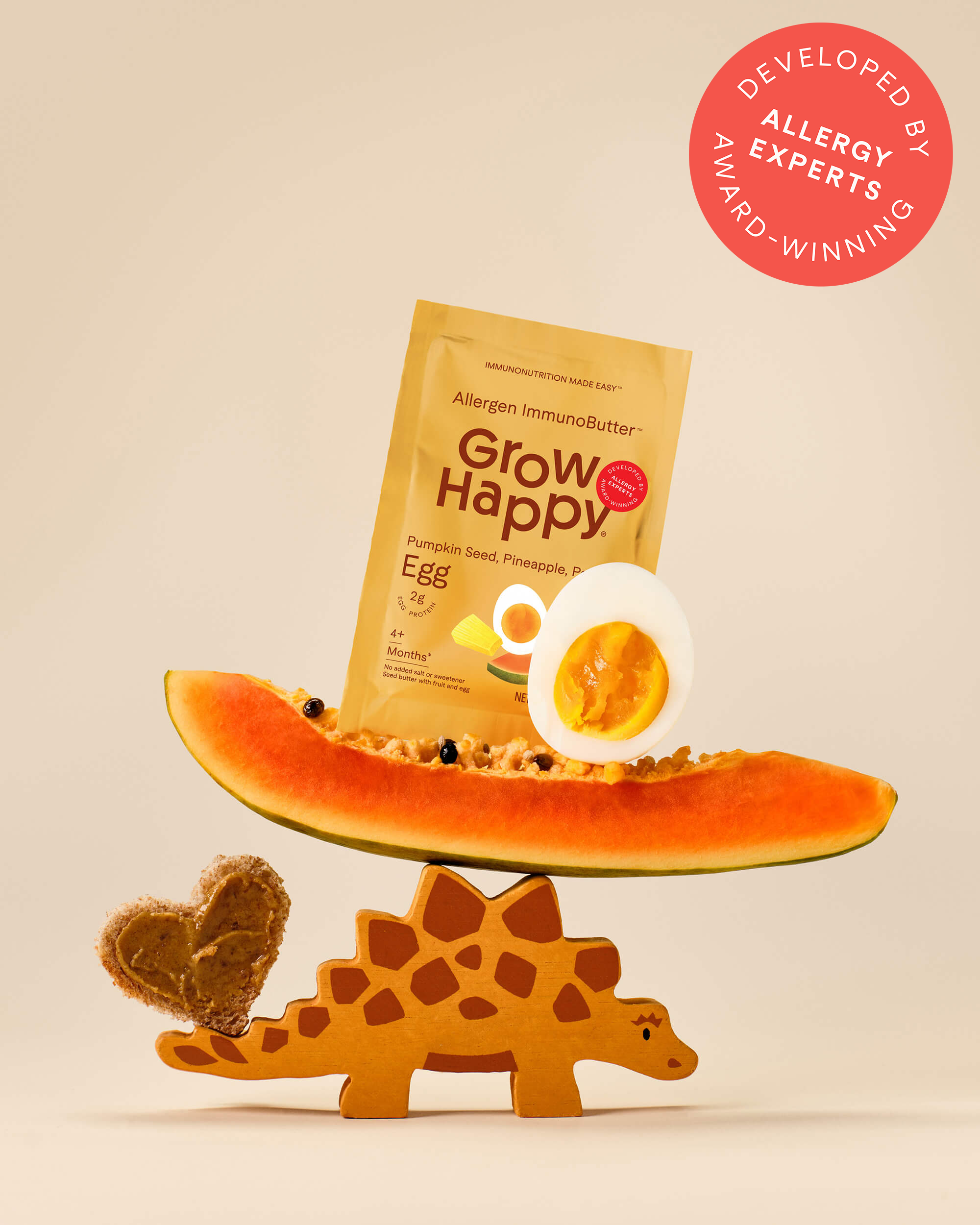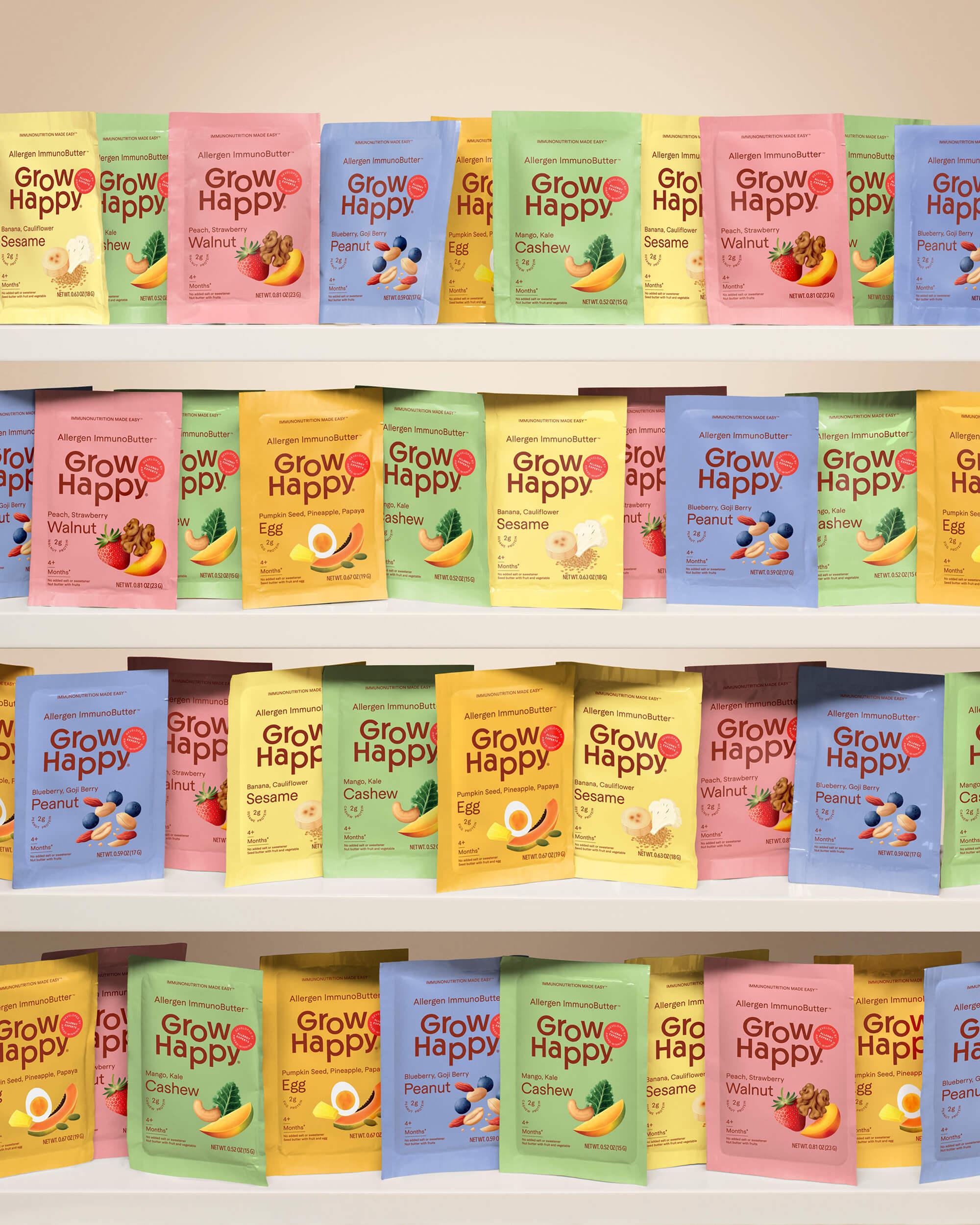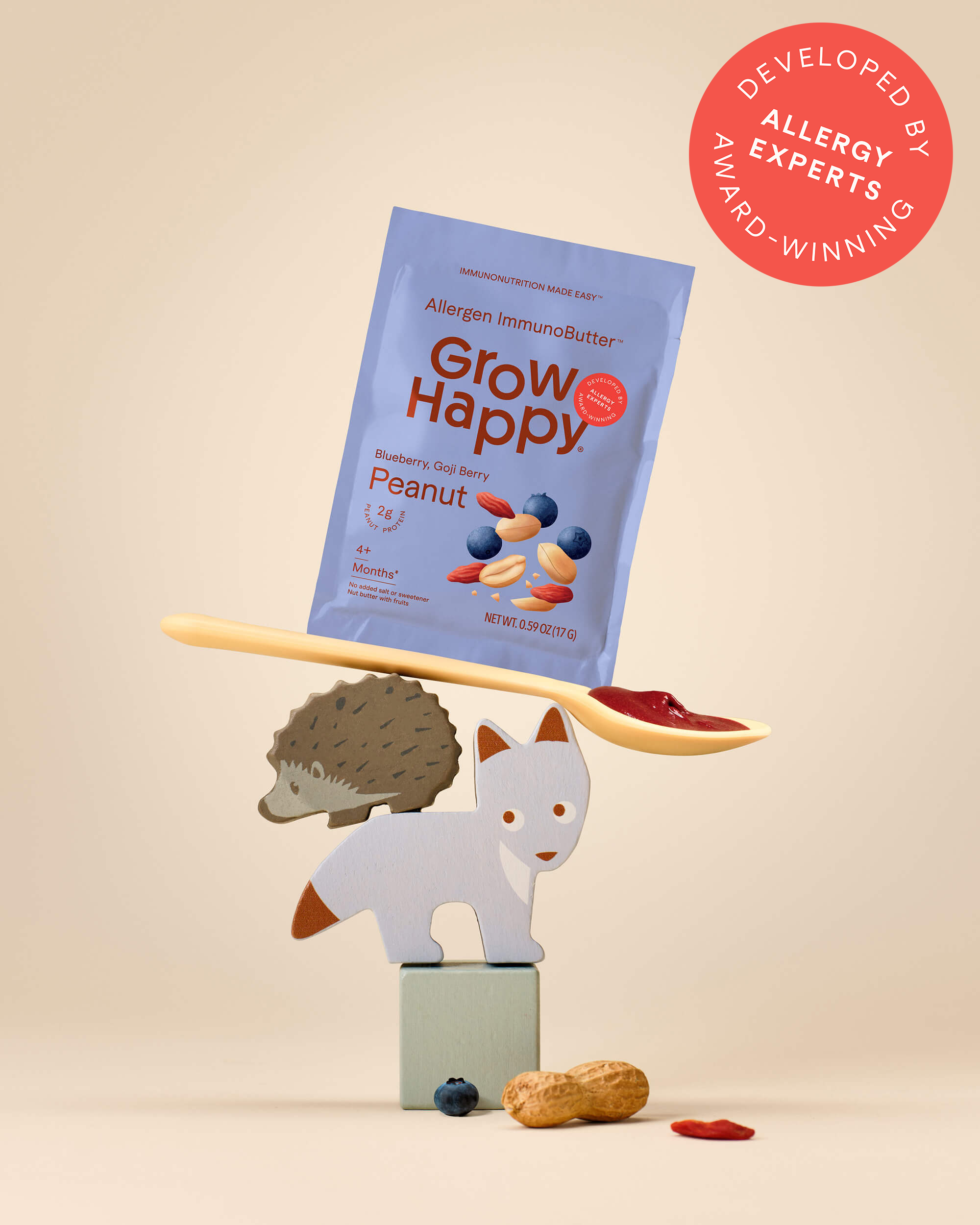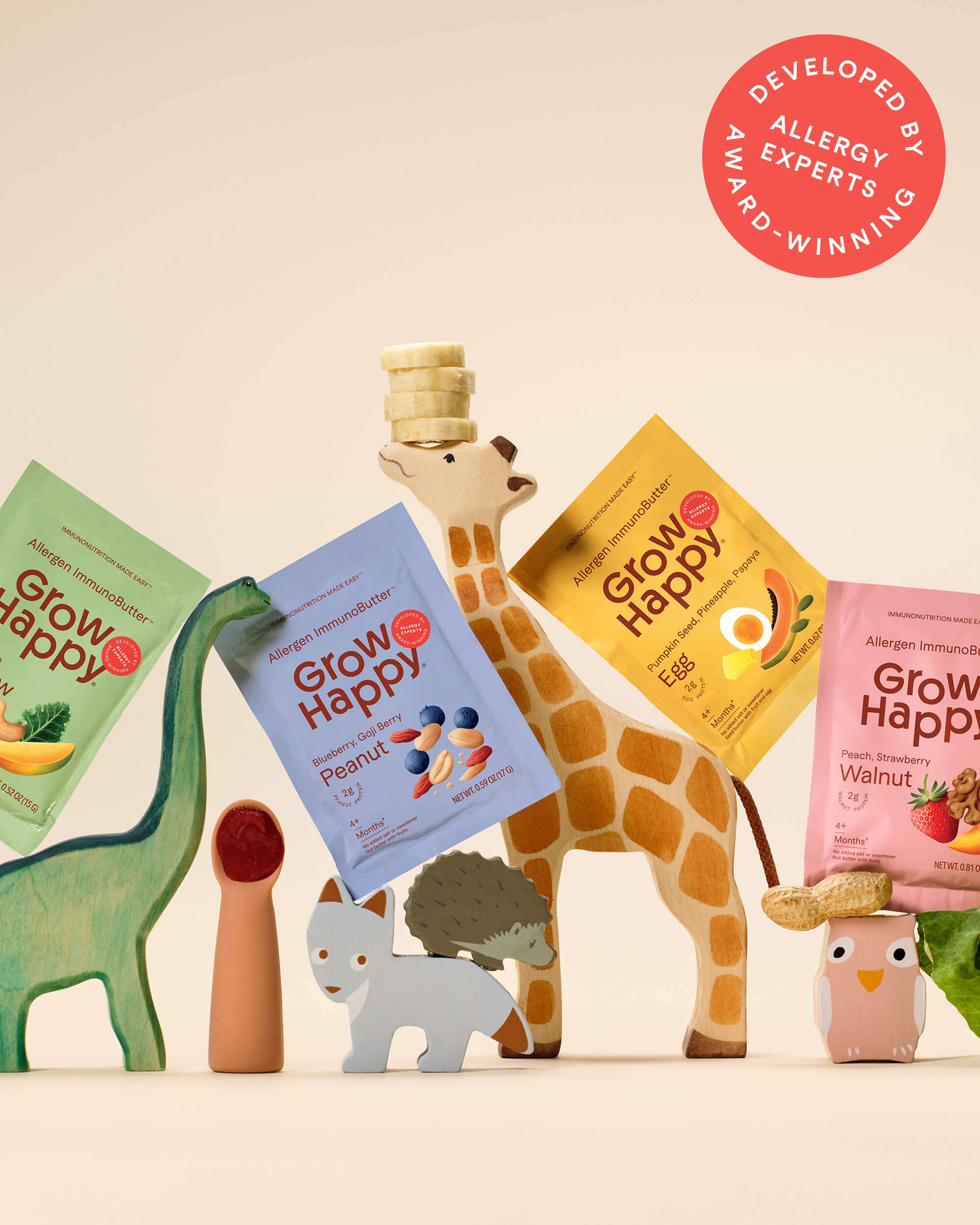 Teach your child's immune system to accept allergens and foster a healthy gut microbiome with GrowHappy - snacks packed with top allergens and diverse nutrients, expertly designed for regular use.